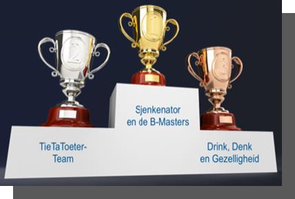 op de voet gevolgd door TieTaToeterTeam en op de derde plaats Team Drink, Denk en Gezelligheid.