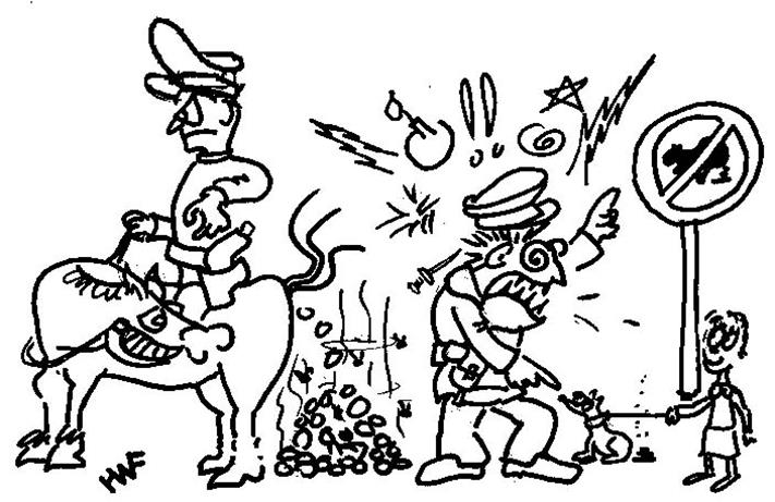 Onwillekeurig doet dit verhaal me dan weer denken aan die politieruiter die in de Parijslaan patrouilleerde en een hondenbezitter verbaliseerde omdat hij ’vergat’ om de drol, die de hond had achtergelaten, op te ruimen.