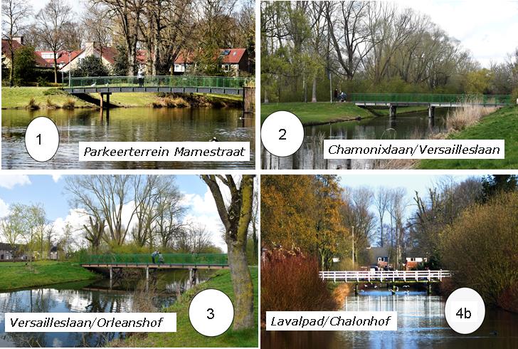 De namen van de bruggen, omdat wij in een wijk wonen met alleen maar Franse namen voor straten, hofjes en pleinen, dienen ook een Franse klank/betekenis te hebben,